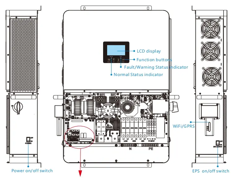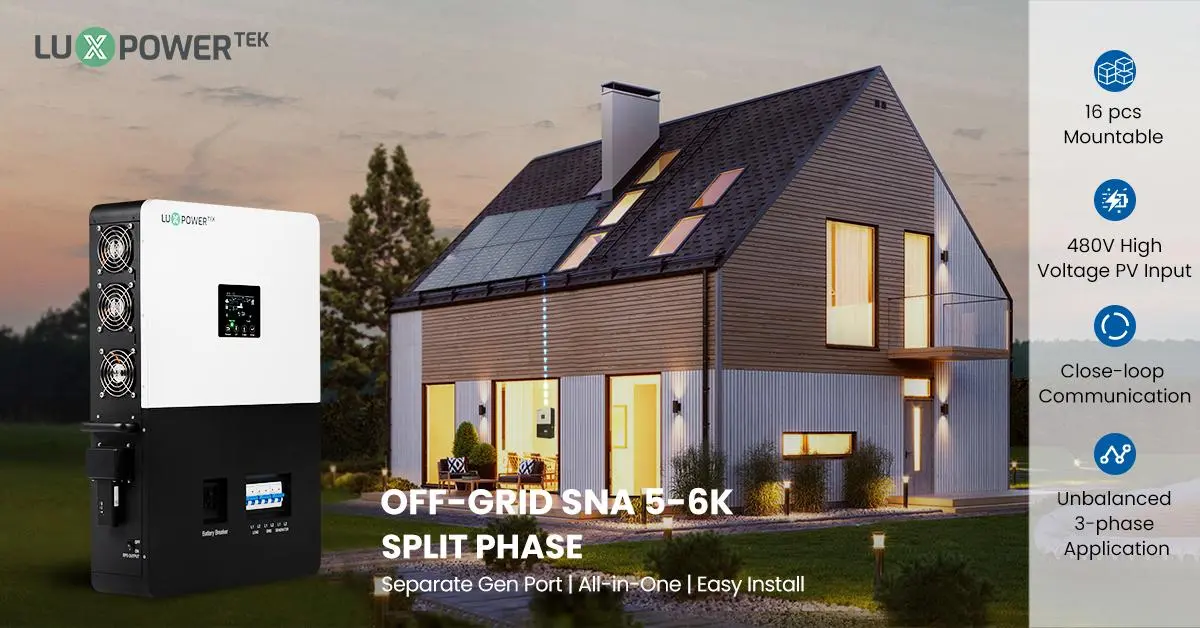 Предназначенная для хранения энергии вне сети, LuxPower SNA US 6000 оснащен специальным интерфейсом генератора и интерфейсом EPS с выходной мощностью 6 кВт.